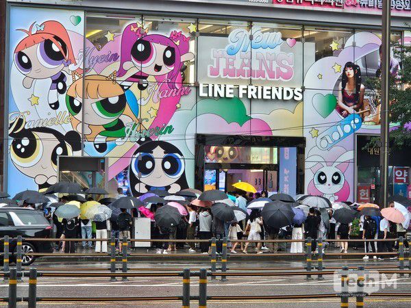태풍 '카눈'이 지나간 뒤 비가 추적추적 내리는 강남 한복판, 길게 늘어선 줄이 단박에 눈에 띄었다. 이들은 모두 IPX(구 라인프렌즈)의 뉴진스 팝업스토어를 찾은 방문객이다. IPX 관계자에 따르면 첫 번째 입장 고객은 전날 밤 9시부터 14시간을 대기했다.