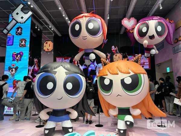 팝업스토어에 입장하면 대형 미디어월과 파워퍼프걸 조형물이 보인다. 뉴진스는 파워퍼프걸과 협업해 이번 앨범을 선보였는데, 이를 구현한 것이다. 매장 메인홀을 중심으로 오른쪽엔 판매 굿즈를 한눈에 감상할 수 있는 전시존이 따로 마련돼있었다.