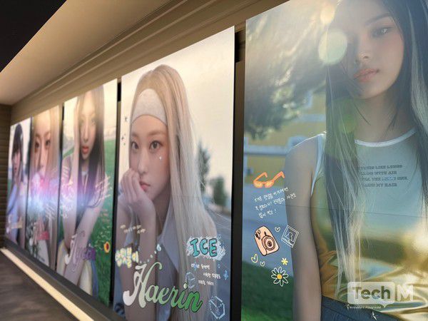 2층으로 올라가면 색다른 포토존이 방문객을 맞아준다. 마치 뉴진스 대형 포토카트를 벽면에 전시한 느낌이다. 특히 한쪽 벽면을 채운 대형거울은 뉴진스와 같이 사진을 남기기에 충분했다. 거울은 뉴진스 포토카드와 비슷하게 장식이 돼있었다.