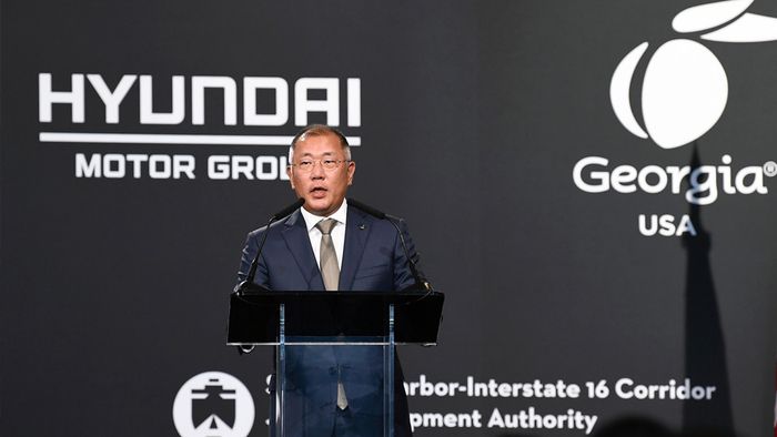 정의선 현대자동차그룹 회장이 지난해 10월 미국 조지아주 브라이언 카운티 전기차 전용 신공장 부지에서 열린 ‘현대자동차그룹 메타플랜트 아메리카’ 기공식에서 발언하고 있다. 현대차그룹 제공.