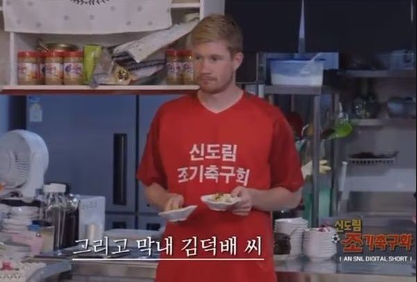 부상 회복 중이라 지난달 30일 서울월드컵경기장에서 열린 아틀레티코 마드리드와의 친선전에서 결장했지만 더 브라위너는 엠 카운트다운, SNL 코리아 등에 출연하면서 축구 팬들을 깜짝 놀라게 했다. 특히 인기 예능 'SNL 코리아'에서 '신도림 조기축구회 막내 김덕배'로 출연해 열연을 펼쳤다. 친선전에서도 경기가 끝나자 그라운드에 나와 한국 팬들에게 손을 흔들며 인사를 전했다.