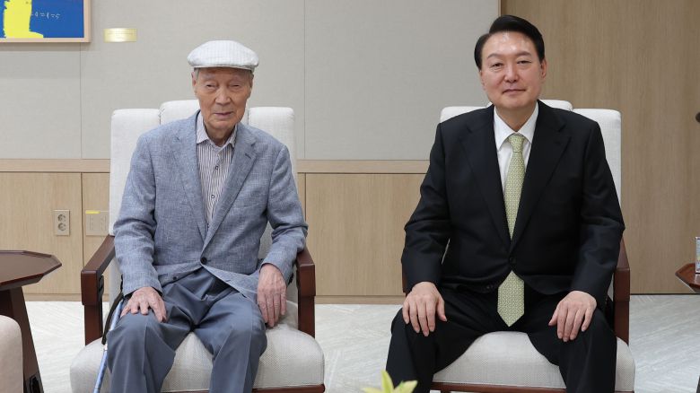 윤석열 대통령의 부친 윤기중 연세대학교 응용통계학과 명예교수가 15일 향년 92세 일기로 별세했다. 사진은 지난해 7월 12일 용산 대통령실을 방문한 윤 명예교수 모습. /대통령실