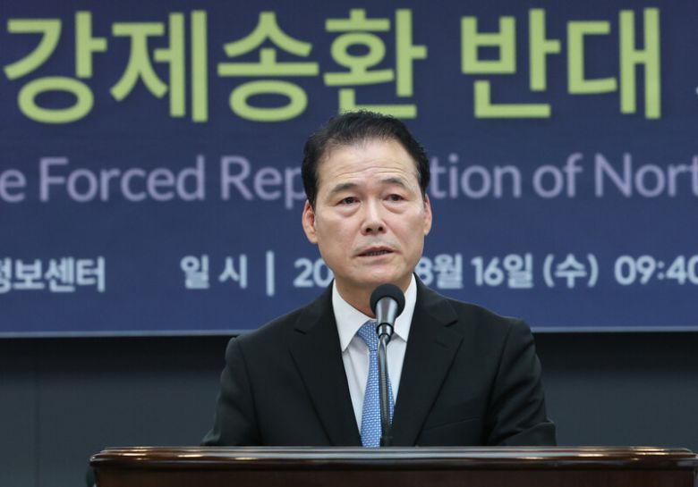 김영호 장관은 이날 서울 중구 한국언론회관에서 열린 ‘재중 억류 탈북민 강제송환 반대 세미나’에 참석해 한 축사에서 “정부는 한국으로 오기를 희망하는 모든 탈북민들을 전원 수용할 것”이라며 이렇게 말했다.