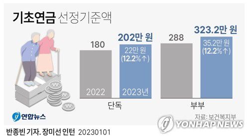 (서울=연합뉴스) 서한기 기자 = 급격한 고령화로 노인인구가 급증하는 상황에서 노년층의 소득과 재산 수준이 갈수록 높아지면서 65세 이상의 소득 하위 70% 노인에게 지급하는 기초연금의 선정기준액도 지속해서 오르고 있다.