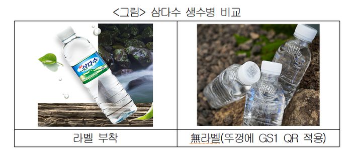 사정이 이렇다 보니 무라벨 생수를 출시해도 낱개 판매는 어려웠다. 묶음 포장 후 상품식별코드를 비닐 포장 위에 추가로 부착해 판매할 수밖에 없었다. 그간 묶음 상품을 파는 대형마트에서만 무라벨 생수를 볼 수 있었던 이유다.