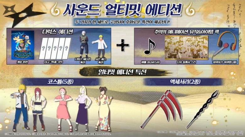 ※ PS4 버전/PS5 버전 '나루토 X 보루토 나루티밋 스톰 커넥션즈' 둘 중 하나를 구매하면 PS4 버전 '나루토 투 보루토 시노비 스트라이커' 내에서 이 특전을 입수할 수 있다.