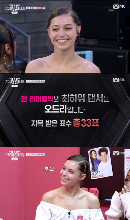 [OSEN=박근희 기자] '스트릿 우먼 파이터2’ 오드리가 노리스펙 약자 배틀에 최다 지목됐다.