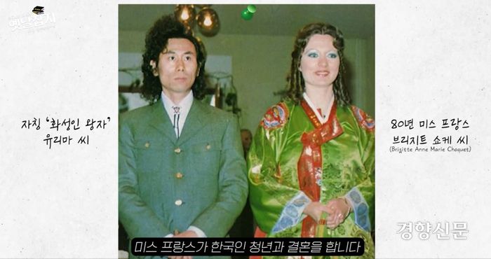 1983년 미스 프랑스 브리지트 쇼케와 결혼한 한국인 남성이자 자칭 화성 왕자 유리마. 유튜브 채널 <옛날잡지> 캡처 |