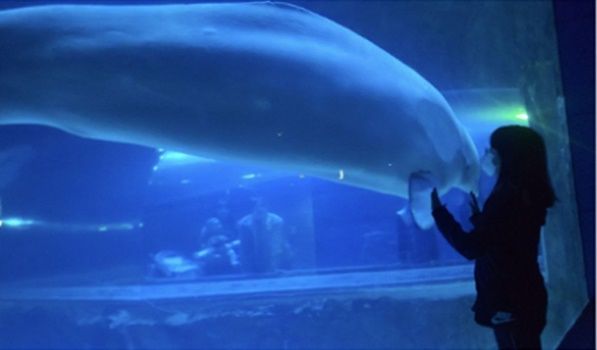 ▲ 롯데월드 아쿠아리움의 지름 7.5m 수족관에 갇힌 흰고래 '벨라'. 벨라와 함께 지내던 '벨로'의 사망으로 벨라 혼자만 남았다. ⓒ동물해방물결