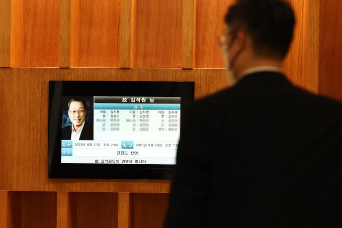 김석원 전 쌍용그룹 회장이 26일 새벽 노환으로 별세했다. 향년 78세. 1945년 대구에서 태어난 김 전 회장은 부친인 김성곤 쌍용그룹 창업주로부터 그룹을 물려받아, 재계 6위까지 성장시키며 쌍용그룹의 전성기를 이끌었던 인물로 평가받는다. 사진은 이날 빈소가 마련된 서울 서대문구 신촌 세브란스병원 장례식장. 뉴스1