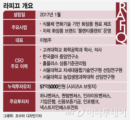 이 대표는 "업계에 종사하면서 식물성 원료가 화장품의 효능보다는 사실상 마케팅 이미지에 그친다는 회의감이 들었다"며 "기술을 통해 이 문제를 해결할 수 있겠다 싶었고 결국 라피끄를 창업하게 됐다"고 전했다.