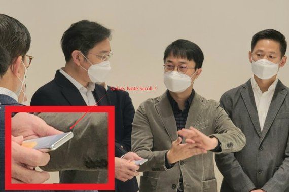 이 제품이 삼성전자의 차세대 스마트폰이라는 얘기가 나왔다. 당시 이 회장의 오른손 엄지의 위치와 옆에서 설명을 하고 있는 연구원의 손 움직임으로 볼 때 화면이 펼쳐지는 롤러블 제품이 유력시 된다.