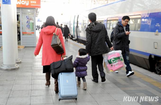 부모와 아이가 기차역을 걷고 있다. 사진=박효상 기자 |