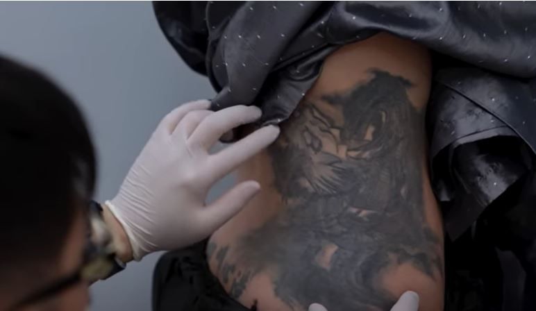 박영수 컴포트성형외과 원장이 이벤트에 선정된 사연자에게 문신을 지우는 시술을 하고 있다. [유튜브 ‘문신 지우는 영수쌤’ 캡처] |