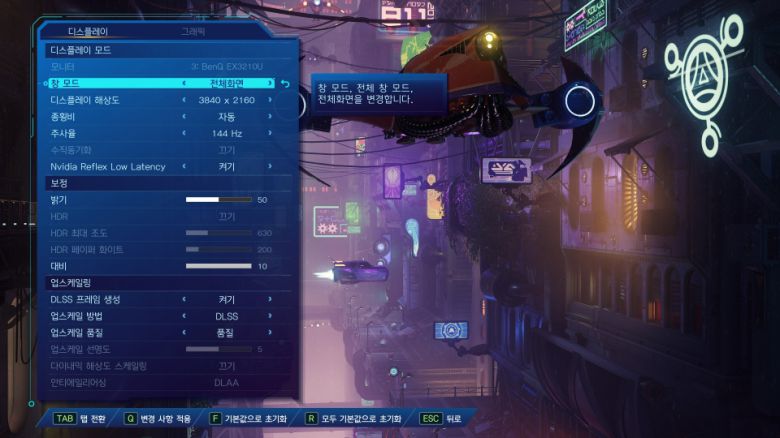 테스트에 앞서 '라쳇 & 클랭크: 리프트 어파트'의 옵션은 다음과 같이 정했다. 해상도는 4K UHD, DLSS 기능 품질, 그래픽 프리셋은 매우 높음으로 설정했다. 이 설정에서 지포스 RTX 4070 Ti로는 레이 트레이싱을 켰을 때 프레임이 크게 떨어지기 때문에 레이 트레이싱 기능은 모두 끄고 진행했다.