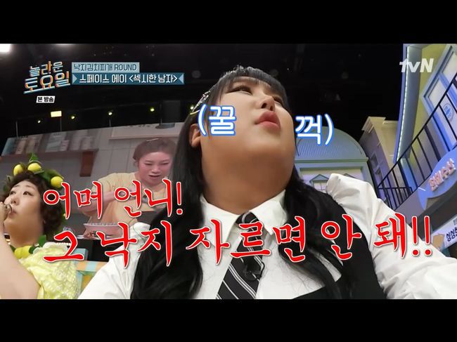 받쓰 게임에서 이들이 고전을 면치 못하자 입짧은 햇님은 낙지김치찌개를 원껏 시식했다. 입짧은 햇님이 낙지를 가위로 잘라서 먹기 좋게 만들고자 하자 풍자는 “어머! 언니! 낙지는 자르면 안 돼!”라며 버럭 소리를 질러 맛에 진심인 모습을 보이기도 했다./osen_jin0310@osen.co.kr