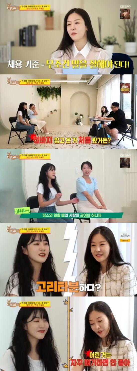 3일 방송된 KBS 2TV '사장님 귀는 당나귀 귀'에서는 성지인이 MZ면접자의 청바지 차림을 지적하는 모습이 전파를 탔다.