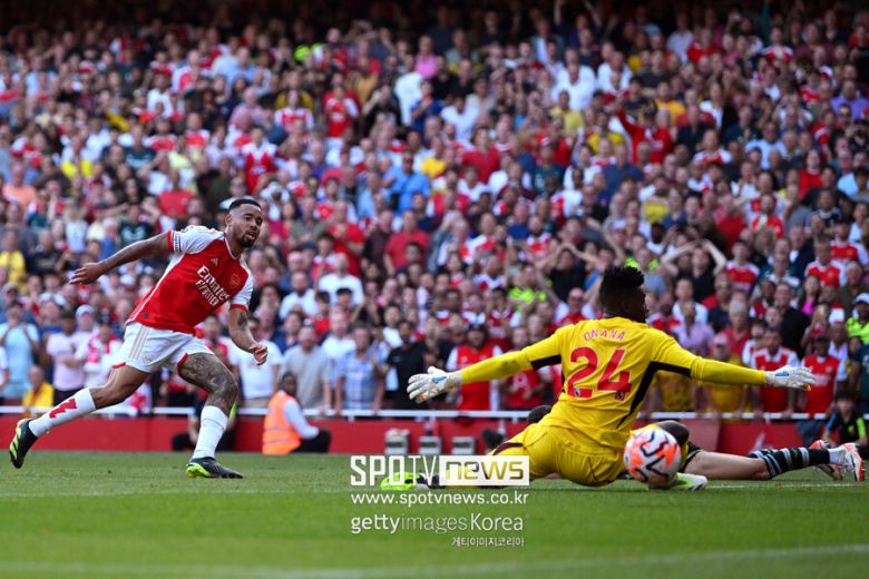아스날은 후반 35분 페널티박스 부근에서 티키타카를 펼쳐 득점 기회를 만들었다. 사카가 골문 앞에서 날린 슈팅을 오나나 골키퍼가 막아 냈다.