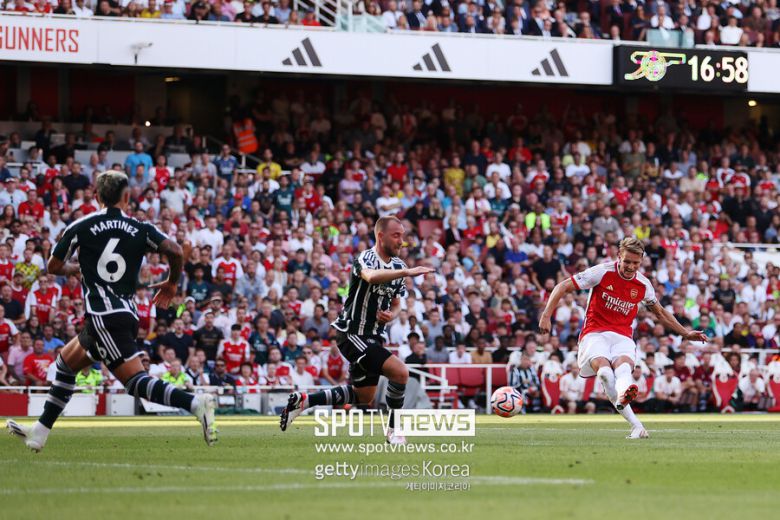 4일(한국시간) 영국 런던 에미레이트 스타디움에서 열린 2023-24 잉글랜드 프리미어리그 4라운드 맨체스터 유나이티드와 경기에서 마르틴 외데고르와 데클란 라이스, 가브리엘 제주스의 연속골에 힘입어 3-1 역전승을 거뒀다.