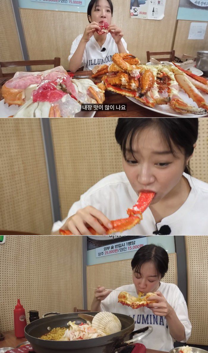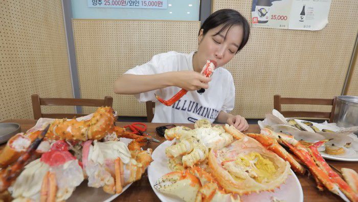 쯔양도 "내가 본 킹크랩 중 가장 크다"고 감탄했다. 이후 순식간에 브라운 킹크랩, 레드 킹크랩을 능숙하게 해체해서 먹고, 게살과 가리비 넣은 라면 2개, 서비스로 받은 전복 먹방까지 선보여 시청자의 군침을 돌게 했다.
