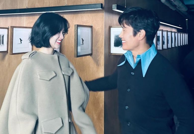 이병헌은 6일 "보고싶었소"라는 말과 함께 사진을 게재했다. 공개된 사진 속 이병헌은 김태리를 한 행사장에서 만나 미소짓고 있다.