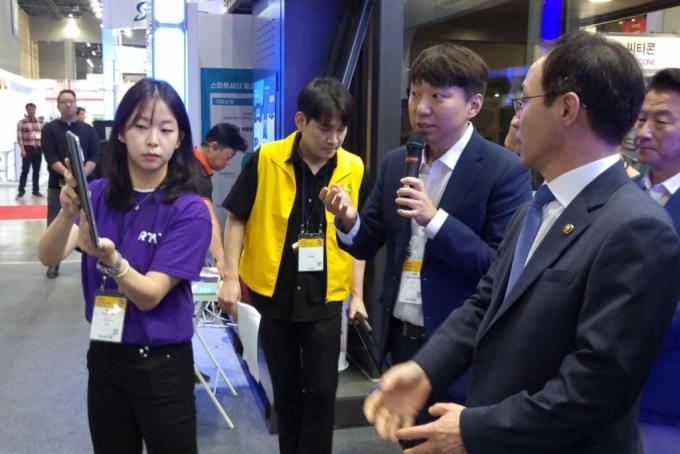 이날 WSCE 2023에 참여했던 김오진 제1차관 역시 VPS 기술을 활용한 솔루션을 체험했다. 전시장 각 부스별 정보와 선택한 부스까지의 경로를 태블릿에 AR방식으로 안내받았다.