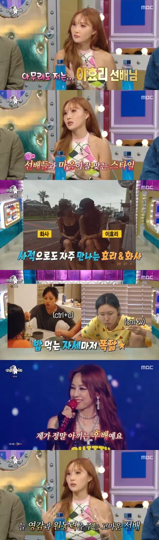 (엑스포츠뉴스 오수정 기자) '라디오스타'에서 화사가 이효리를 향한 고마운 마음을 전했다.