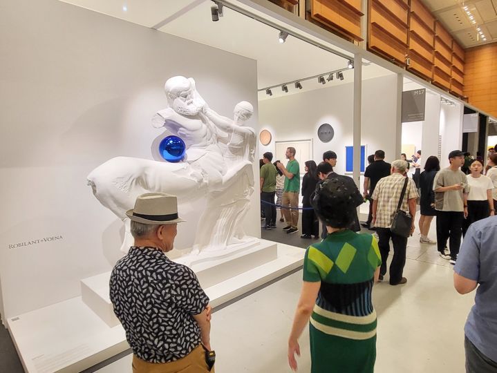 제프쿤스의 3m 크기의 신전 같은 푸른색 게이징볼 작품은 핫포토존으로 자리잡았다. 또 폰타나부터 17세기 화가 안드레아 바카로가의 ‘홀로페르네스의 머리를 든 유디트’도 등장, 프리즈 서울의 인기부스로 등극했다.