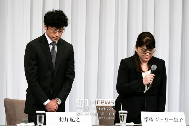 쟈니스 대표이사 후지시마 쥬리 K.와 히가시야마 노리유키, 이노하라 요시히코는 7일 오후 일본 도쿄에서 기자회견을 열고 "피해자들에게 진심으로 사과드린다"고 성착취 문제에 공식 사과했다.
