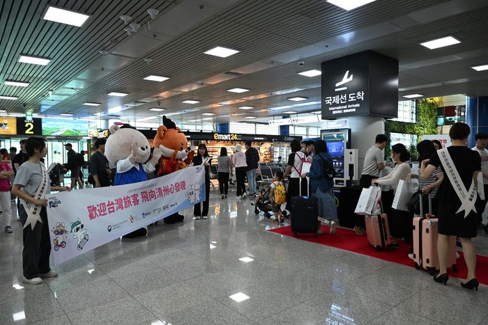 한국관광공사 세종충북지사가 7일 코로나로 중단됐던 청주-타이페이 노선 재개를 기념해 대만 입국객 대상으로 환대캠페인을 추진했다. 사진 | 한국관광공사 |