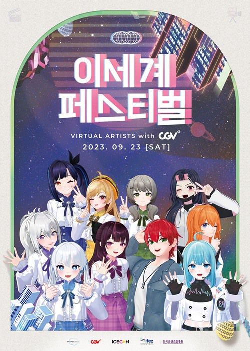 ‘이세계 페스티벌’은 패러블엔터테인먼트에서 주최하는 국내 최초 메타버스 연계 오프라인 뮤직 페스티벌이다. CGV는 이세계아이돌, 숲튽훈, 독고혜지, 비밀소녀, HAKU0089 등 버추얼 아티스트 5개팀 공연을 이날 오후 7시 30분부터 생중계한다. 버추얼 아티스트는 아바타를 기반으로 가상의 공간, 메타버스에서 활동하는 아티스트다.