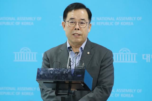 박성중 국회 과학기술정보방송통신위원회 국민의힘 간사가 10일 오후 서울 여의도 국회 소통관에서 뉴스타파 대선 공작 관련 기자회견을 마치고 취재진의 질문에 답하고 있다. 뉴스1