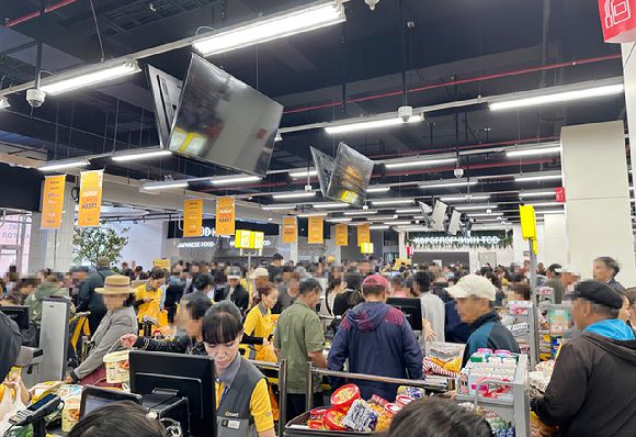 몽골 이마트 4호점 오픈 첫날 계산대에 사람들이 몰려 있다. [사진=이마트]