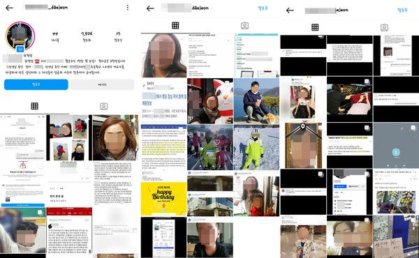 이 계정의 게시물에는 대전 교사 사망사건의 가해자로 지목된 학부모 가족의 실명, 사진, 개인 전화번호, 직업, 사업장, 생활기록부 등이 올라와 있었다.