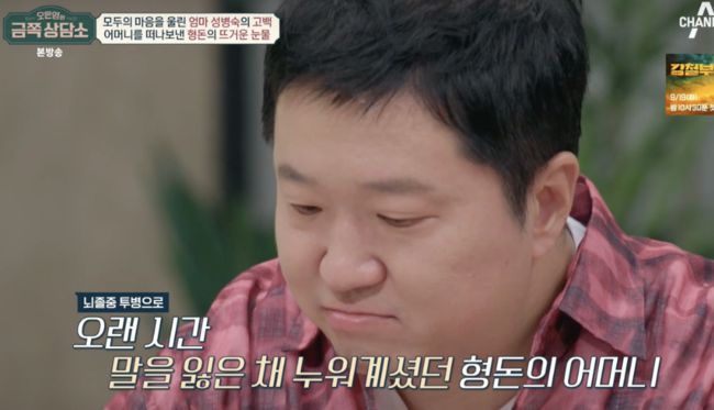 [OSEN=김수형 기자]'오은영의 금쪽 상담소'에서 정형돈이 성병숙이 딸에게 전한 마음에 울컥하며 눈물을 보였다.