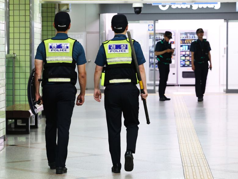 지난달 경찰이 경기도 성남시 오리역을 순찰하는 모습. 연합뉴스