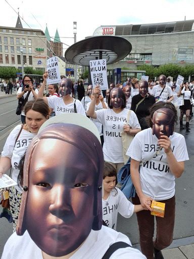 빼앗긴 평화의 소녀상을 되찾기 위해 가면을 쓰고 스스로 소녀상이 된 이들은 중앙역에서 시작해 쾨니히스 플라츠와 시청 등 2시간여 동안 도심을 행진하며 게릴라 퍼포먼스를 펼쳤다.
