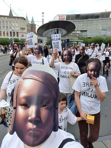 연합뉴스에 따르면 지난 2일(현지시간) 독일 카셀 중앙역에서 카셀대 학생들과 시민 50여명이 소녀상 가면을 쓰고 시위를 벌였다. 이들은 '누진은 어디에(Where is Nujin?)', '누진을 구하라(Save Nujin)'라고 적힌 티셔츠를 입고 같은 내용의 피켓을 든 이들은 "누진을 구하라"고 외쳤다.