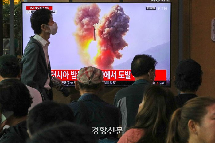 13일 서울역 대합실 TV에 북·러 정상회담 중 북한이 발사한 탄도미사일 관련 뉴스가 나오고 있다. 성동훈 기자 |