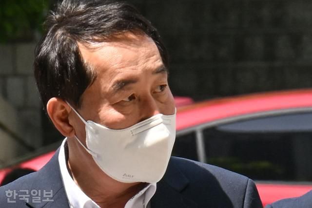 2021년 더불어민주당 전당대회 불법자금 살포 의혹을 받고 있는 강래구 전 한국수자원공사 상임감사위원이 5월 서울 서초구 서울중앙지법에서 열린 두 번째 구속 전 피의자 심문(영장실질심사)을 위해 출석하고 있다. 한국일보 자료사진