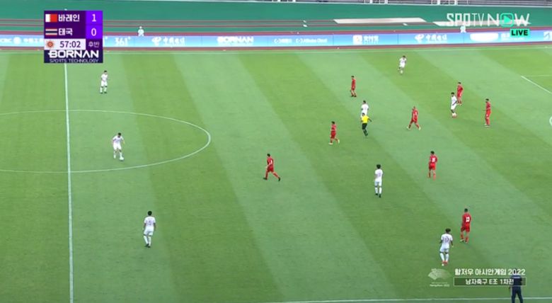 바레인은 완전히 내려앉았다. 태국은 양 측면으로 공을 돌리며 기회를 엿봤다.