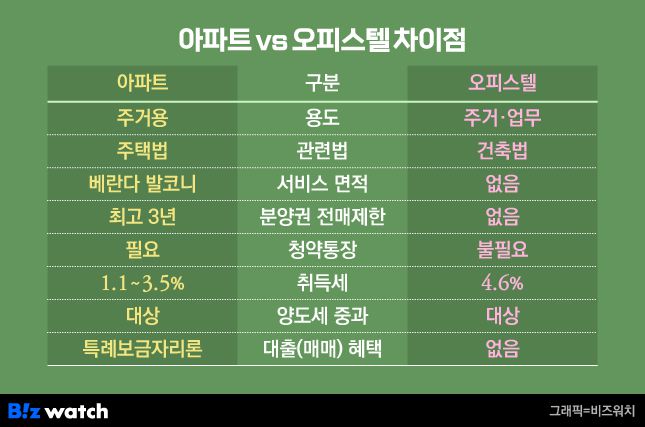 아파트vs오피스텔 차이점./그래픽=비즈워치 |