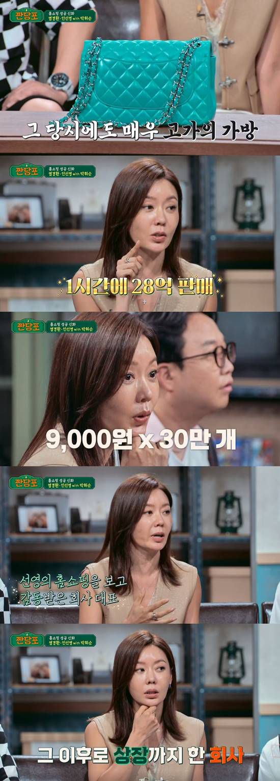 더불어 안선영은 명품 가방을 '짠당포'에 들고 와 소개했다. 그러면서 자신의 명품 가방이 선물 받은 것이라고 소개해 궁금증을 자아냈다. 그는 "제가 홈쇼핑 출연을 한창 많이 할 때, 1시간 라이브에서 28억을 판매했던 적이 있다"라고 이야기를 꺼내 모두를 놀라게 했다.