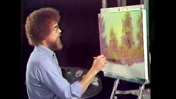 항상 끝에 '참 쉽죠~'라고 말했던 것으로 유명한 미국 화가 밥 로스가 지난 1983년 TV 방송에 출연해서 그림을 그리는 모습입니다.