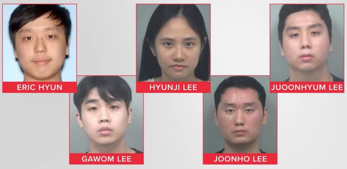 ◇ 김현정> 신상이 머그샷으로 그냥 얼굴 모자이크 처리 이런 거 하나도 없이 5명이 다 공개가 됐어요. 지금 보여드리고 있습니다.