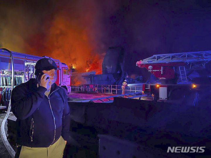 [세바스토폴=AP/뉴시스] 우크라이나군이 창의적 전술로 흑해에서 주도권을 장악해나가고 있다. 사진은 지난 13일(현지시간) 크름반도 세바스토폴의 해군 조선소가 우크라이나군의 공격을 받아 연기와 불꽃이 피어오르는 모습. 2023.9.21. |