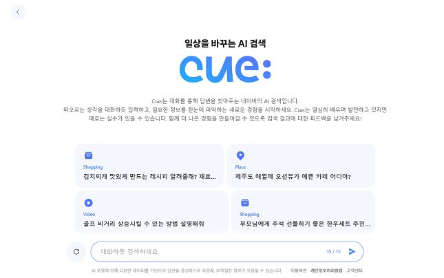 네이버의 생성형 AI 검색 서비스 '큐:'의 첫 화면/사진=네이버 큐: 캡처 |