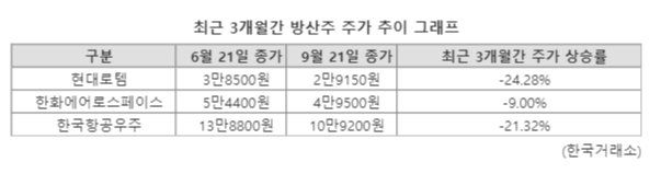 주가를 끌어내린 것은 외국인 투자자들의 매도 공세다. 외국인은 3개월 동안 방산주 3사 주식을 모두 5443억원어치 내다팔았다. 현대로템 2416억원, 한화에어로스페이스 1934억원, 한국항공우주 1093억원 등의 순매도를 기록했다.