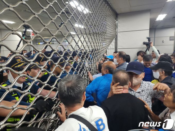 가결 소식에 국회 앞에 모여 있던 이 대표 지지자들이 격앙된 반응을 보이며 국회 진입을 시도했다.