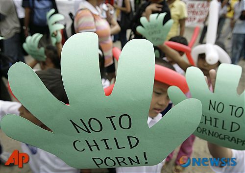 【마닐라=AP/뉴시스】11월20일 세계어린이날을 하루 앞둔 2008년 11월19일 필리핀 마닐라의 상원 밖에서 아동 포르노 반대 시위가 열리고 있다. 스페인에서 인공지능(AI)을 이용해 옷을 입지 않은 나체의 모습으로 변형시킨 어린 소녀 수십명의 사진이 유포돼 경찰이 수사에 착수했다고 CNN이 21일 보도했다. 피해 소녀들의 어머니들은 이 가짜 사진들이 아동 포르노 사이트에 실릴 것으로 우려하고 있다. 2023.09.21. |